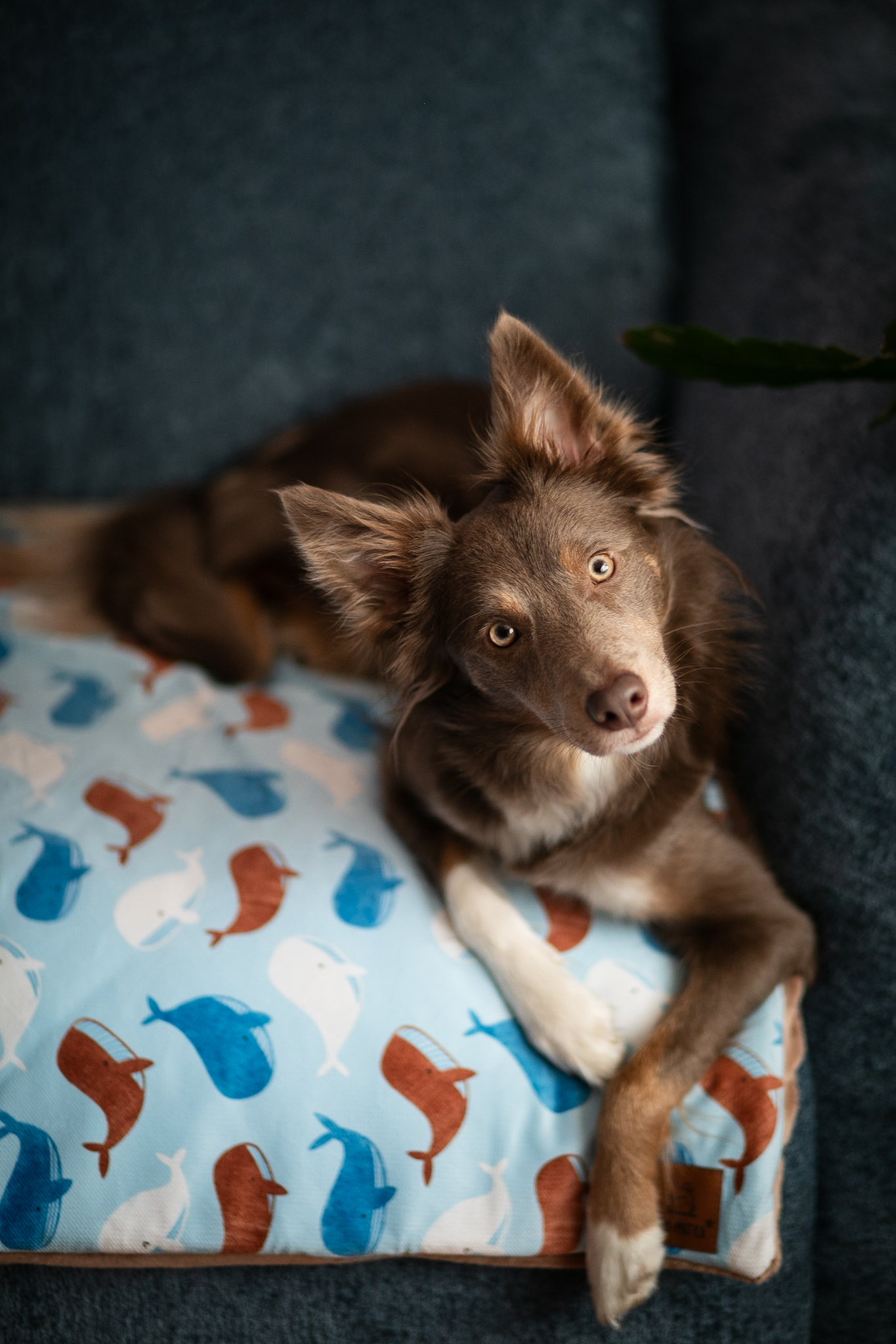 Print w limitowanej kolekcji WHALE ME to słodki wielorybek, który zadba o zdrowy sen Waszych psiaków. Tonacje błękity, beże i brązy. Kocyk jest nie tylko praktyczny ale też piękny, więc przyjemnie będzie go zabrać ze sobą, wszędzie tam gdzie psiak ma mieć swoje miejsce do odpoczynku.